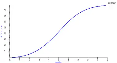 When all test-takers have an opportunity to attempt all items on a single test, each total score on the test maps to a unique estimate of ability and the greater the total, the greater the ability estimate. Total scores do not have a linear relationship with ability estimates. Rather, the relationship is non-linear as shown in Figure 1. The total score is shown on the vertical axis, while the corresponding person location estimate is shown on the horizontal axis. For the particular test on which the test characteristic curve (TCC) shown in Figure 1 is based, the relationship is approximately linear throughout the range of total scores from about 13 to 31. The shape of the TCC is generally somewhat sigmoid as in this example. However, the precise relationship between total scores and person location estimates depends on the distribution of items on the test. The TCC is steeper in ranges on the continuum in which there are more items, such as in the range on either side of 0 in Figures 1 and 2.