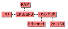 The early designs of the Raspberry Pi Model A and B boards included only 256 MB of random access memory (RAM). Of this, the early beta Model B boards allocated 128 MB to the GPU by default, leaving only 128 MB for the CPU.[71] On the early 256 MB releases of models A and B, three different splits were possible. The default split was 192 MB for the CPU, which should be sufficient for standalone 1080p video decoding, or for simple 3D processing. 224 MB was for Linux processing only, with only a 1080p framebuffer, and was likely to fail for any video or 3D. 128 MB was for heavy 3D processing, possibly also with video decoding.[72] In comparison, the Nokia 701 uses 128 MB for the Broadcom VideoCore IV.[73]