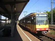 Rastatt station is the main passenger station in the town of Rastatt in the German state of Baden-Württemberg. It is an important station for the Karlsruhe Stadtbahn, being served by four of its lines, which are operated by the Albtal-Verkehrs-Gesellschaft ("Alb Valley Transport Company", AVG). In addition, it is served by regional and long-distance trains operated by Deutsche Bahn. The station is located at chainage 96.5 km on the Rhine Valley Railway and at chainage 82.9 on the Rhine Railway (both chainages are based on the original distance from Mannheim). The station is also the beginning of the Murg Valley Railway.