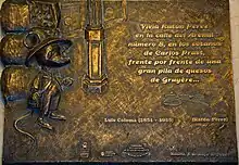 The City Council of Madrid paid tribute in 2003 to Ratón Pérez with a commemorative plaque at the façade of number eight of Calle del Arenal, where the mouse was said to have lived. [6] The plaque reads: "Here lived, in a box of cookies at Prast confectionery store, Ratón Pérez, according to the story that the father Coloma wrote for the child King Alfonso XIII". He thus became the first fictional character honored with a plaque by the City Council. Inside the building, where there are now several shops and offices, another plaque and a small bronze statue were also installed.