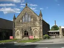 Further schools in the area include the Friends School at Low Green which operated from 1832 until 1921 and whose buildings now serve as a light industrial estate, The Rev. Anthony Ibbotson's Seminary, run 1823-1858 by the local minister, the Baptist Ministerial Training College in a Victorian Gothic building on Woodlands Drive which opened in 1859 and closed in the 1970s, and Little London School in Micklefield Lane, built in 1846 in a vernacular Tudor style, which was also used by the Baptists as a Sunday School until their own was built in 1884 and also as a Mechanics Institute until a building in Leeds Road was acquired. From 1920 on it served as an infants school and closed in 1960. Being used for some years for storage purposes, it was converted into flats (1980). Littlemoor Primary School in quasi-ecclesiastical style with a bell turret opened in 1879 at the junction of Harrogate Road and Batter Lane. It closed in 2005 and is converted into housing.[12] Rawdon Littlemoor Primary School now uses a new building.