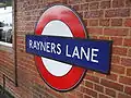 - Platforms at Rayners Lane station, 1934 One platform shows a London Underground style roundel name board, the other a Metropolitan Railway Diamond name board.