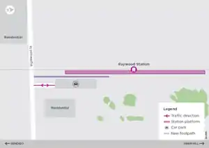 Raywood railway station is a proposed railway station in the town of Raywood, Victoria, Australia. A station at Raywood was first opened in 1882 on what is now the Piangil line, but closed to passenger traffic on 4 October 1981 as part of the New Deal timetable for country passengers.[1][2]