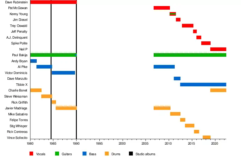 | Past members | Dave Rubinstein Andy Bryan Al Pike Steve Weissman Rick Griffith Victor Dominicis Javier Madriaga Pat McGowan Dave Manzullo Kenny Young Jim Diesel Mike Sabatino Paul Rye Felipe Torres Stig Whisper Trey Oswald Jeff Penalty A.J. Delinquent Rick Contreras Kevin Knuckles Max M. Björn Spike Polite Vince Sollecito Neil Patterson |
