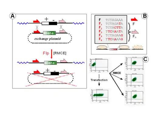 - Turan, S; Zehe, C; Kuehle, J; Qiao, J; Bode, J (2013). "Recombinase-Mediated Cassette Exchange (RMCE) – a rapidly-expanding toolbox for targeted genomic modifications". Gene. 515 (1): 1–27. doi:10.1016/j.gene.2012.11.016. PMID 23201421.