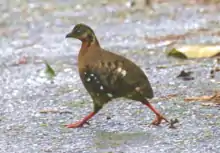 The red-breasted partridge (Arborophila hyperythra), also known as the Bornean hill-partridge,[2] is a species of bird in the family Phasianidae. It is endemic to hill and montane forest in Borneo,[3] preferring bamboos and thickets. The International Union for Conservation of Nature (IUCN) has assessed it as a least-concern species.
