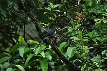 The red-faced malkoha is a bird of dense forests, where it can be difficult to see despite its size and colour.