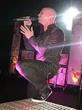 Red was formed by identical twin brothers,[1] guitarist Anthony and bassist Randy Armstrong, and lead vocalist and pianist Michael Barnes.[2] The three grew up in Linesville, Pennsylvania where Barnes first met the Armstrongs at elementary school and remained friends.[3][4][5] They gained inspiration to pursue a music career after they attended festivals, including acts at the Christian-themed Creation Festival, and wished to perform on stage.[4][1] They became members of Ascension, their early gigs taking place in youth centres around Erie, Pennsylvania, playing covers of contemporary Christian music before they turned to hard rock.[1][6] After the three finished their education, they relocated to Nashville, Tennessee in February 2002 after Audio Adrenaline guitarist Barry Blair had heard their music online and invited them to record.[1][4][5] The three worked day jobs, Barnes as a nurse in an emergency room and the Armstrongs in a mall,[7] while using their spare time to form their own musical style, which was influenced by Linkin Park, Sevendust, and Chevelle as they liked the band's emotionally-driven music.[4] The first line-up of Red was completed in 2004 following the addition of drummer Andrew Hendrix and guitarist Jasen Rauch.[5][8][9] Randy said they wished for a band name that was "short, meaningful, and easy to remember", and spent two years searching for groups with a similar name and secured a trademark with "Red".[7]