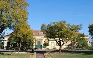 Red Cliffs is a closed railway station in the town of Red Cliffs, on the Mildura line, in Victoria, Australia. It was established as a passenger station in 1920, with a loop siding being provided around this time. In 1922, a railmotor service commenced between Mildura and Red Cliffs, and a railmotor turntable was provided. The service ended in 1928.[1] In April 1924, the Red Cliffs – Werrimull branch line opened, heading west, and was later extended to Meringur and Morkalla.