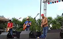 One of many bands representing Red Dirt music—as their name signifies—is the Red Dirt Rangers. The Rangers (John Cooper, Brad Piccolo and Ben Han) have been making music since the late 1980s and, along with Childers, were part of The Farm's earliest musical brotherhood, which also included Jimmy LaFave and Tom Skinner. These musicians and others jammed in the living room, on the front porch, in the garage (known as the Gypsy Cafe), and around campfires in the yard where "the sheer joy of creating music with friends transcended everything else."[2] Cooper said, "The Farm was as much an attitude as a physical structure. It allowed a setting where freedom rang and all things were possible. Out of this setting came the music." The physical structure burned down in 2003.[2]