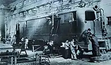 However, due to a range of problems with reliability, production facilities and methods, difficulties in reproducing key components such as the NB-410 traction motor and other complications that delayed mass production, it wasn't until 1970 that the production design was finalised.[2] Eventually over 150 were built; in 2002 the KSR rostered 290 electric locomotives - the bulk of the motive power fleet - with the Red Flag 1 type (including variants) accounting for over half of that number.[3] Over fifty years of operation, the Red Flag 1 class locomotives have made over 6 million kilometres in service.[2]