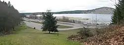 Workers brought in from India, Japan and China, were housed separately[10] in buildings (upon pilings) near the mouth of the creek.[6] The company store, post office, and other accommodation were on the southwest side beyond the railway track and parallel highway.[10] In the late 1910s, excessive speed by motorists was a concern.[11] By the mid-1930s, the expanded non-European housing nestled between the road and rail arteries.[6]