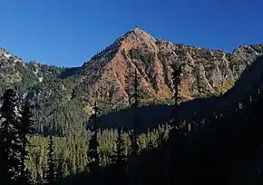 Red Mountain is a 5,890-foot (1,800-metre) mountain summit located in King County of Washington state. It is set within the Alpine Lakes Wilderness which is part of the Cascade Range.[1] Red Mountain is situated three miles north of Snoqualmie Pass on land managed by Mount Baker-Snoqualmie National Forest. The nearest higher neighbor is Lundin Peak, 0.7 mi (1.1 km) to the northwest.[1] Precipitation runoff on the north side of the mountain drains into Middle Fork of the Snoqualmie River, whereas the south side of the mountain drains into the South Fork Snoqualmie River via Commonwealth Creek.