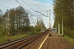 Reda Pieleszewo railway station is a railway station serving the town of Reda, in the Pomeranian Voivodeship, Poland. The station is located on the Gdańsk–Stargard railway. The train services are operated by SKM Tricity.