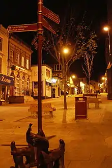 On 7 November 2007, Redruth jointly won (with Luton) the annual UK town centre environment awards, which are run by the BCSC (a retail property consortium).[20] The judges praised the cast bronze 'dogs'[21] and also liked the large amount of work that had been done to the town in terms of landscaping the central area (mainly Fore St & the opeways).