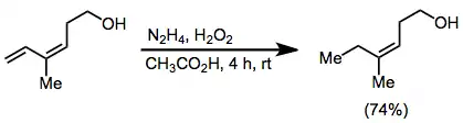 Recently, diimide has been generated catalytically through the oxidation of hydrazine by a flavin-based organocatalyst. This system selectively reduces terminal double bonds.[10]