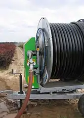A reel is an object around which a length of another material (usually long and flexible) is wound for storage (usually hose are wound around a reel). Generally a reel has a cylindrical core and walls on the sides to retain the material wound around the core. In some cases the core is hollow, although other items may be mounted on it, and grips may exist for mechanically turning the reel.