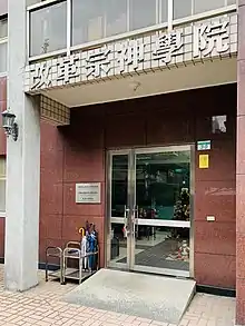 CRTS is an ATA accredited seminary located in the same building as Hong En Tang Reformed Presbyterian Church. It was originally located in the NanKang Reformed Presbyterian Church and officially moved to its current location in 1996. It was found in September 1990 by Korean missionary Rev. Daniel W.J. Liu and several other ministers (including but not limited to Peter Tong, Daniel E.S. Tsai, David J.H. Lee, Xi-gang Feng). Rev. Liu initially served as the seminary's first president and became its dean 3 years later. Rev. Peter Tong was elected by the board to take over as the second president. The seminary was initially named the China Theological Seminary, later being renamed to China Reformed Theological Seminary on March 1991. Currently the board of the seminary includes representatives from several parties, including the Reformed Presbyterian Church in Taiwan (RPCT), the Reformed Theological Association (RTA), Presbyterian Church in America (PCA), Friends of CRTS (FCRTS), various overseas Chinese, and various alumni. Although small in scale (having only around 4 resident faculty, 65 on-campus graduate students, and 10 undergraduate students during its 2019 spring semester), it is the only confessional reformed seminary in Taiwan.[27]