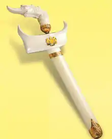 The regalia of Malaysia (Malay: Alat-alat Kebesaran Diraja Malaysia; Jawi: الت٢ كبسرن دراج مليسيا) includes all the items which are deemed sacred and symbolic of the supremacy and authority of the Yang di-Pertuan Agong or the Supreme King of Malaysia and his consort, the Raja Permaisuri Agong. The installation of the Supreme King is a very special ceremony. Only on this particular day are the masses able to see his regalia. Several of these are Malaysian National Treasures since 2009.