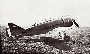 The Reggiane Re.2000 is an Italian all metal, low-wing monoplane fighter aircraft. It is the first aircraft to be designed by Reggiane to employ aluminum stressed skin construction, as opposed to the wooden or mixed wood and metal structures that had been traditionally used in contemporary Italian aircraft such as the Savoia-Marchetti SM.79 (which had been previously produced by Reggiane under license). The stressed skin fuselage was highly streamlined, save for the protrusions of the hard-rivetted finish.[6] The majority of the aircraft's exterior, including the tail, was metal-skinned; however, the control surfaces had fabric coverings.[6]