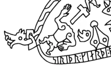 Reginn after he had been killed by Sigurd on the 11th century Ramsund carving in Södermanland, Sweden.