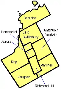 ![]() Map showing York Region's location in Ontario | |