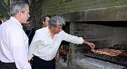Asado is a technique for cooking cuts of meat, usually beef, alongside various other meats, which are cooked on a grill (parrilla) or open fire. It is considered the traditional dish of Argentina, Uruguay, Paraguay, Chile, southern Brazil, and the Bolivian Chaco.