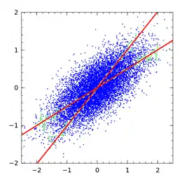 Regression dilution, also known as regression attenuation, is the biasing of the linear regression slope towards zero (the underestimation of its absolute value), caused by errors in the independent variable.