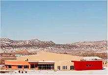 The school was started as Rehoboth Mission School in 1903[1] by Christian Reformed Church (CRC) missionaries to the Navajo and Zuni people. The missionaries of Dutch descent named the settlement "Rehoboth", meaning "plenty of room",[2] and the school's entrance sign (pictured) quotes Genesis 26:22, "Now the Lord has given us room, we shall flourish in the land". It was established on the 320-acre (130 ha) former Smith's Ranch, near Gallup, New Mexico, purchased by the CRC Board of Missions.[3] It opened with six Navajo children aged 5 – 11.[2] In its early years as an Indian boarding school, the children were forbidden to speak the Navajo language and were taught to eschew their native culture.[1] In the 1940s, a high school was added.[4] By 1985, enrollment had grown to 375 pupils, of whom 63% were Native Americans, mostly Navajo.[2] In 2002, the school's then-executive director, Ron Polinder, was quoted as saying, "We came here 100 years ago with some cultural arrogance, expecting Native American people to become like white people".[1] Courses in the Navajo language were added to the high school's curriculum in 2002 and since expanded to encompass all grades. The school is now "committed to respecting Native culture and language", its website states.[5]