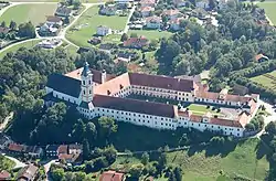In 1779 the monastery was assigned to Austria and thus escaped the secularization of Bavarian monasteries. During the Napoleonic Wars it had to struggle for its existence.[2] In 1810 the monastery was placed under administration. Normal monastic activities resumed in 1817.[3] In 1883 the collegiate church organ was widened following the plans of organist J. E. Habert.[3] During World War II (1939-1945) the monastery was forced to provide a home for a flying school, but avoided being closed down.[2]