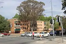 The four-storey Bega flats (containing 114 two-bedroom flats) were completed east of Cooyong street and south of Ainslie in 1957 in order to cope with a critical lack of accommodation for public servants transferred to Canberra. The ACT Heritage Council described them as having been designed in the Post-War International style "similar to post-war housing in Europe, particularly in English new towns. The fine proportions, crisp detailing and low scale of [the Allawah Court] and their siting continuing the street pattern made them more architecturally successful than the three eight-storey blocks of flats along Currong Street" (nearby in Braddon). The Heritage Council declined to heritage list the buildings[6] and despite some local opposition they were demolished in 2017/18 and will be replaced by more modern and denser accommodation along with some commercial uses.[7][8][9]