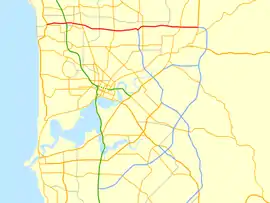 | Map of Perth's central suburbs with Reid Highway highlighted in red | |