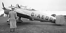 The prototype, registered as G-AEOD on 9 October 1936, had its first flight early in 1939 with Reid and Sigrist test pilot George E. Lowdell at the controls.[2] The R.S.1 named whimsically "Snargasher" by the factory workers during its construction (the name which was eventually formally adapted had no meaning other than as a "family joke") made its first public appearance at the Heathrow Garden Party of the Royal Aeronautical Society on 15 May 1939 with its Certificate of Airworthiness issued on 3 June 1939.[4]