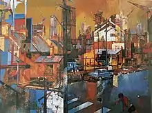 From 1968, Zusters quit his job and practised as a full-time professional artist. His cityscapes featured a rich paint surface and sharp-edged thickness of oil paint applied with a palette knife in layers. He painted urban scenes of Sydney, inland Australia and portraits. His usual signature was “Zusters”. Two of his early portraits are in the National Portrait Gallery’s collection – Sir Edgar Coles (1962) and Terry Clune (1960)].