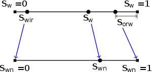 By scaling the water saturation to the flowing saturation window, we get a (new or another) normalized water saturation value