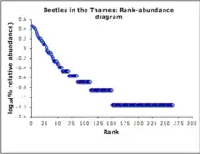 Relative species abundance distributions are usually graphed as frequency histograms ("Preston plots"; Figure 2)[7] or rank-abundance diagrams ("Whittaker Plots"; Figure 3).[8]