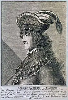 Unlike some other areas of the Balkans, such as Bulgaria and Bosnia, for the first couple centuries of Ottoman rule, up until the 1500s, Islam remained confined to members of the co-opted aristocracy and a couple scattered military settlements of Yuruks from Anatolia, while the native Albanian peasantry remained overwhelmingly Christian.[36][37] Even long after the fall of Skanderbeg, large regions of the Albanian countryside frequently rebelled against Ottoman rule, often incurring large human costs, including the decimation of whole villages.[38] In the 1570s, a concerted effort by Ottoman rulers to convert the native population to Islam in order to stop the occurrence of seasonal rebellions began in Elbasan and Reka.[39] In 1594, the Pope incited a failed rebellion among Catholic Albanians in the North, promising help from Spain. However the assistance did not come, and when the rebellion was crushed in 1596, Ottoman repression and heavy pressures to convert to Islam were implemented to punish the rebels.[36]