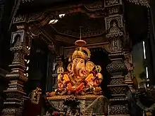 Most Marathi families have their own family patron or protective deity or the Kuladaivat.[3]: 1–27 This deity is common to a lineage or a clan of several families who are connected to each other through a common ancestor.[4] The Khandoba of Jejuri is an example of a Kuladaivat of some families; he is a common Kuladaivat to several castes ranging from Brahmins to Dalits.[5] The practice of worshiping local or territorial deities as Kuladaivats began in the period of the Yadava dynasty.[4] Other family deities of the people of Maharashtra are Bhavani of Tuljapur, Mahalaxmi of Kolhapur, Mahalaxmi of Amravati, Renuka of Mahur, Parashuram in Konkan, Saptashringi on Saptashringa hill at Vani in Nasik district, and Balaji.