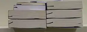 Copies of remaindered books may be marked by the publisher, distributor, or bookseller to prevent them from being returned. "Remainder marks" have varied over the years, but today most remainders are marked with a stroke with a felt-tipped marker across the top or bottom of the book's pages, near the spine.[2]