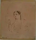 While most of the drawings depict Indian royalty or noblemen, a few represent the common people or women.[7] All drawings are made on 'Asian paper', which was then imported by the Dutch East India Company and highly prized. Rembrandt's use of expensive paper has been interpreted as him holding the subject matter in high regard.[6]