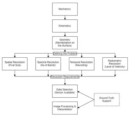 Image processing is crucial to convert raw data into useful information. For imaging remote sensing, where spectral data are collected and recorded in pixels of an image, a two dimensional representation. After removal of noise and calibration, images are then geo-referenced to relate pixel to real-life geography. The first-hand data are then corrected to remove noise such as atmospheric disturbance, structural effects and distortion. Remote sensing data are often validated by ground truth, which usually serves as training data in image classification to ensure quality.[3][5] The image interpretation could be achieved by an interpreter or computation.[3] The reliability of the map interpreted is high only if the expert has a thorough understanding of geomorphology, how the surface landscape could be shaped by possible interactions of numerous factors and the limitation of the method. Although there exist a wealth of experiences is present for visual interpretation of aerial photos, the method is time-consuming and prone to human errors. Digital supervised or unsupervised landform classification employing crisp or fuzzy clustering logic have opened new possibility to the viable solutions. However, computation algorithms are subject to scale dependence matters and arbitrary definition of class boundaries. The presence of vegetation cover and rugged terrain may also reduce the applicability.[5] Statistical and computational algorithms to identify correlations are developing vigorously for image analysis. For example, the emergence of non-parametric classifiers such as neural network becomes an alternative in classifying massive data.[1]
