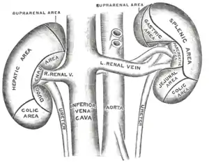 ![]() The anterior surfaces of the kidneys, showing the areas of contact of neighboring viscera. | |