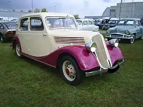 In 1935, adjustments were made to the bonnet, with horizontal chrome-lined openings in place of the earlier three shutters. Two-tone paintwork was standard. A supplement of ₣400 francs was required for a single colour.