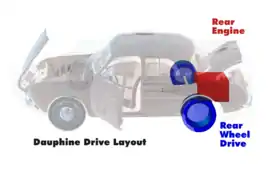 - Engine configuration: Speaking about the Dauphine's rear-engine, rear-wheel-drive layout, Renault's Fernand Picard said in a paper he delivered in 1957 that the car was part of a rear-engine trend led by Volkswagen, Fiat and Renault whereby the rear drive/rear engine configuration had increased from 2.6 percent of continental western Europe's car production in 1946 to 26.6 percent in 1956.[25] The United Kingdom auto industry, which had also managed largely to avoid the front-engine/front-wheel drive trend of the 1930s, was excluded from Picard's figures.[25]