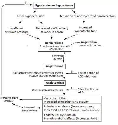 - Lappin, Sarah L.; Fountain, John H. (5 May 2019). "Physiology, Renin-Angiotensin System". NCBI. NIH. Archived from the original on 29 April 2019. Retrieved 9 May 2019.