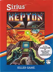 Repton is a Defender-inspired game written by Dan Thompson and Andy Kaluzniacki for the Apple II and published by Sirius Software in 1983.[1] It was ported to the Atari 8-bit family, and Commodore 64.