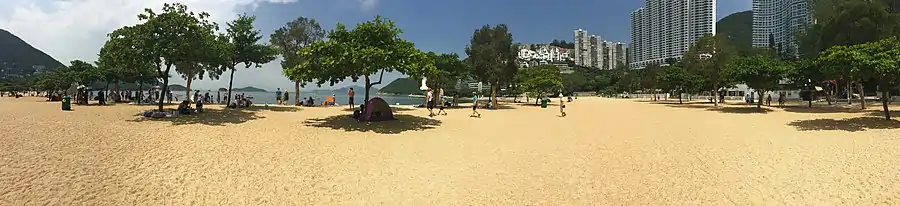 The beach was extended artificially,[3] and thus the sand closer to the shore is coarser in texture than the sand further away. It is one of the longest beaches in Hong Kong with a length of 292 metres (960 feet).[5]