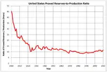 A simplistic interpretation of the ratio has led to many false predictions of imminent "running out of oil" since the early years of the oil industry in the 1800s. This has been especially true in the United States, where the ratio of proved reserves-to-production has been between 8 years and 17 years since 1920. Many have mistakenly interpreted the result as the number of years before the oil supply is exhausted. Such analyses do not take into account future reserve growth.[2]