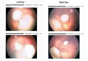 | Rb tumors taken with a retinoscan before and during chemotherapy | |