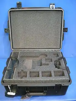 Plastic molded transit case with pre-cut foam interior